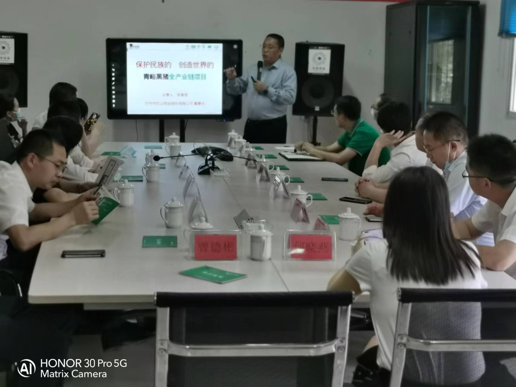 公司董事長兼總經理張育賢就:青峪黑豬全產業(yè)鏈項目做了詳細的介紹:巴山牧業(yè)一路走來深受黨中央、國務院的關懷,于2021年榮獲"全國脫貧攻堅先進集體",農業(yè)產業(yè)化國家重點龍頭企業(yè);國家級高新技術企業(yè),青峪豬:是聽音樂、吃百草、飲泉水、舔硒土 吸氧吧、青山綠水為家的環(huán)境下成長得,嚴格按照動物福利標準生產,同時青峪豬也是榮獲世界動物福利養(yǎng)殖“金豬獎”的;同時張育賢董事長兼總經理詳細介紹了:1+3+125青峪豬養(yǎng)殖產業(yè)體系.