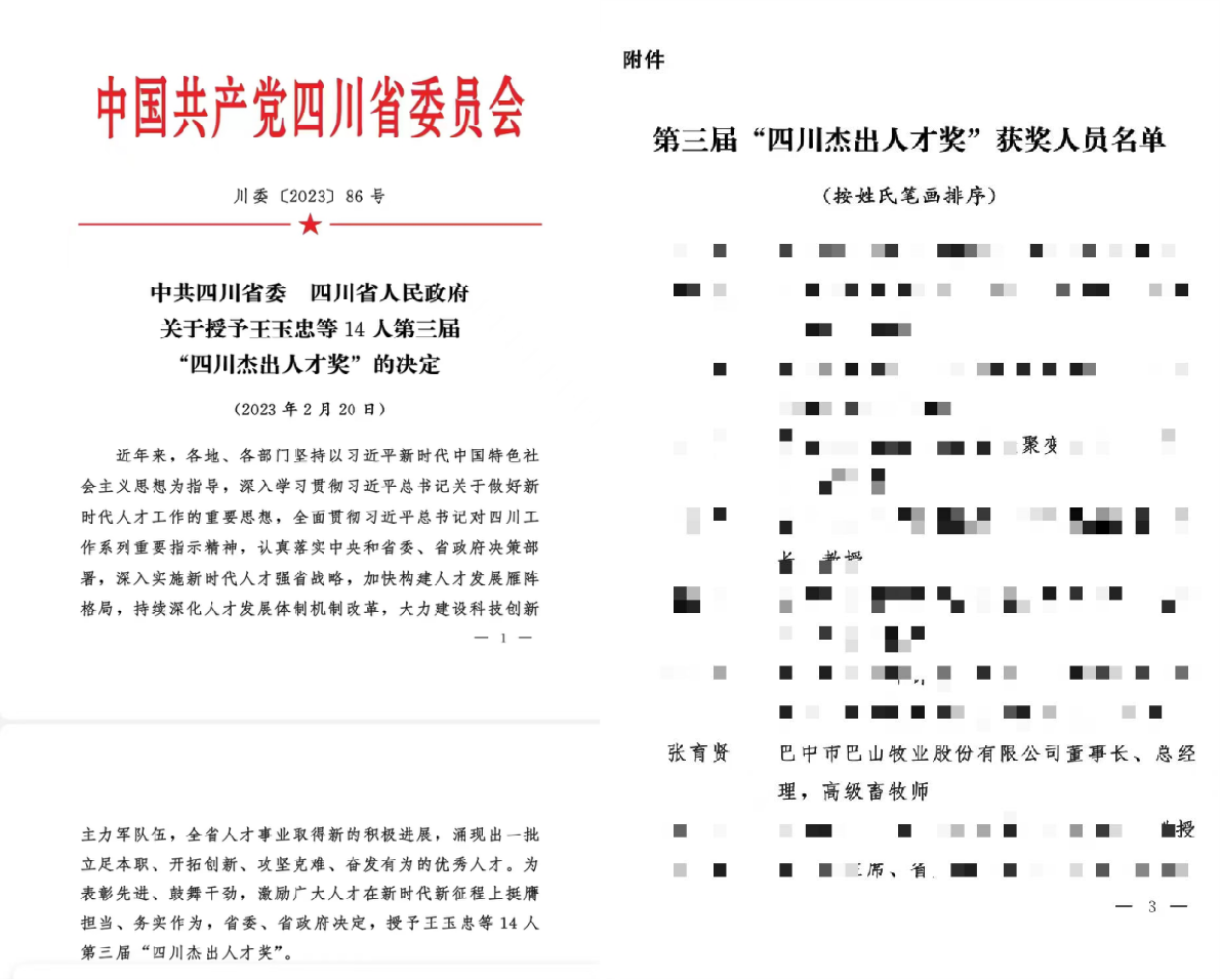 2023年2月20日,中共四川省委、四川省人民政府頒發(fā)了省第三屆“四川杰出人才獎”,公司董事長張育賢榮獲此殊榮。