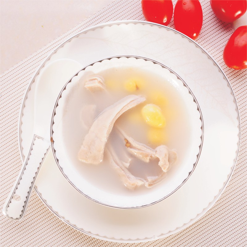 2.豬肚吧,白果、胡椒,姜蔥放入湯窩。